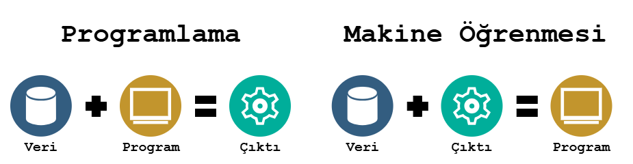 Eğitim tamamlandıktan sonra model, şeklin sağ kısmında görülen “Program” hâline gelir; yani artık yeni veriler üzerinde otomatik olarak doğru tahminler üretebilir. Bu nedenle denetimli öğrenme, gerçek dünyadaki pek çok uygulamada — hastalık teşhisi, spam e-posta tespiti, fiyat tahmini, duygu analizi ve görüntüde nesne tanıma gibi — kritik bir rol oynar.